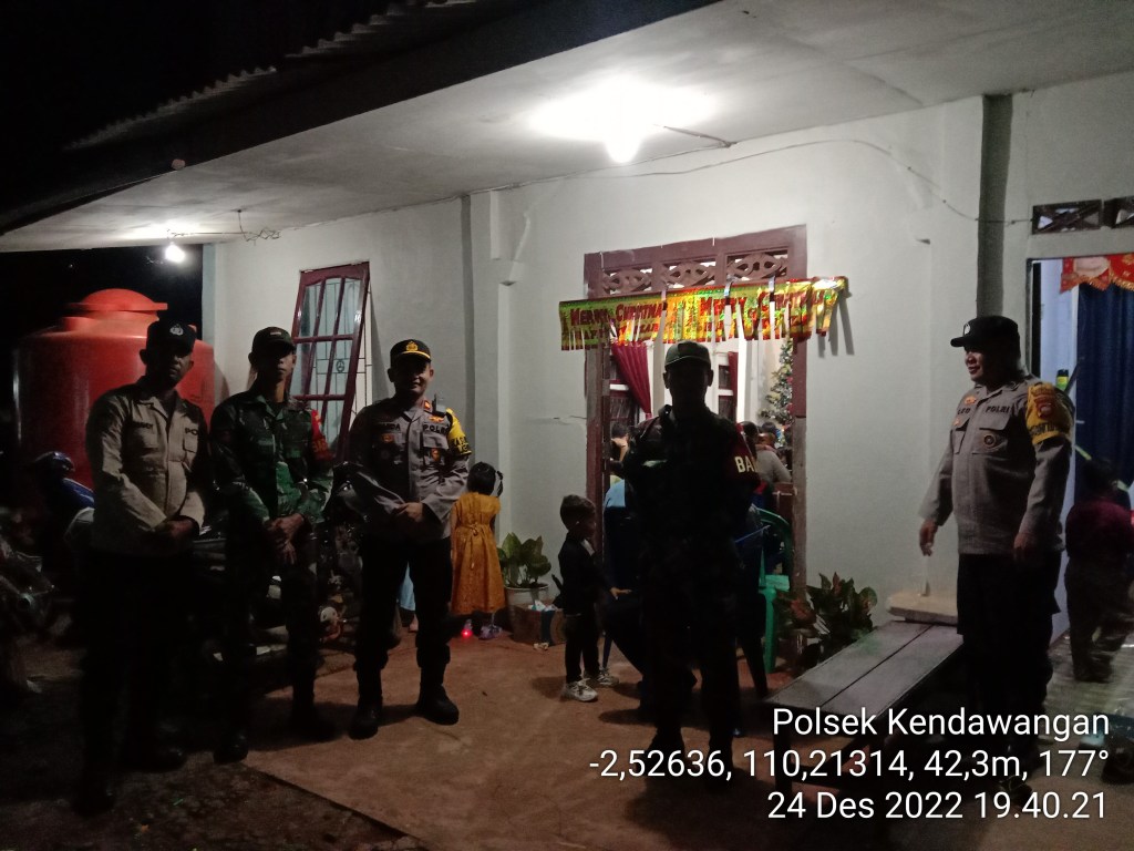 Kendawangan, Sabtu (24/12/2022) Guna memberikan rasa aman bagi warga masyarakat yang sedang melaksanakan ibadah, Polsek Kendawangan Polres Ketapang, rutin melaksanakan giat patroli pengamanan Ibadah gereja diwilayah Kecamatan Kendawangan