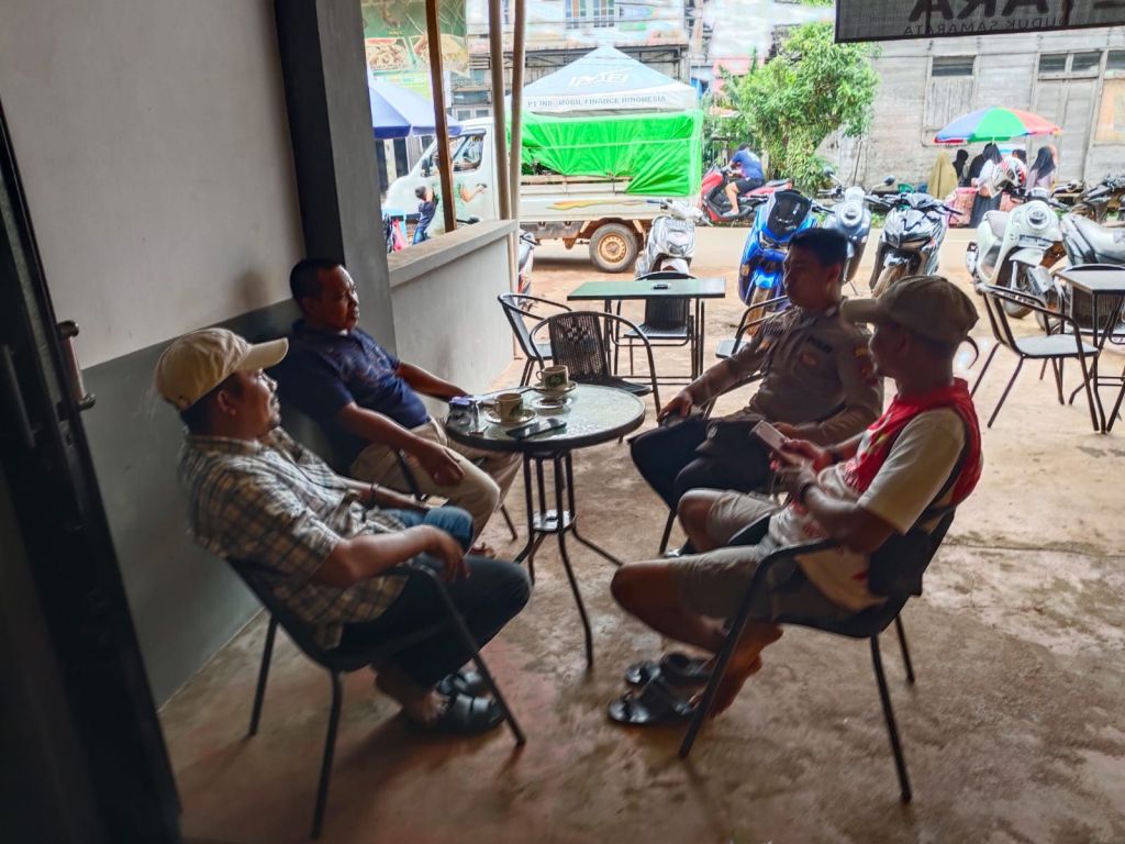 Dalam sambangnya kali ini Kanit Binmas Polsek Kendawangan ngobrol santai dengan masyarakat Desa Kendawangan Kiri yang sedang melaksanakan aktivitas di pasar