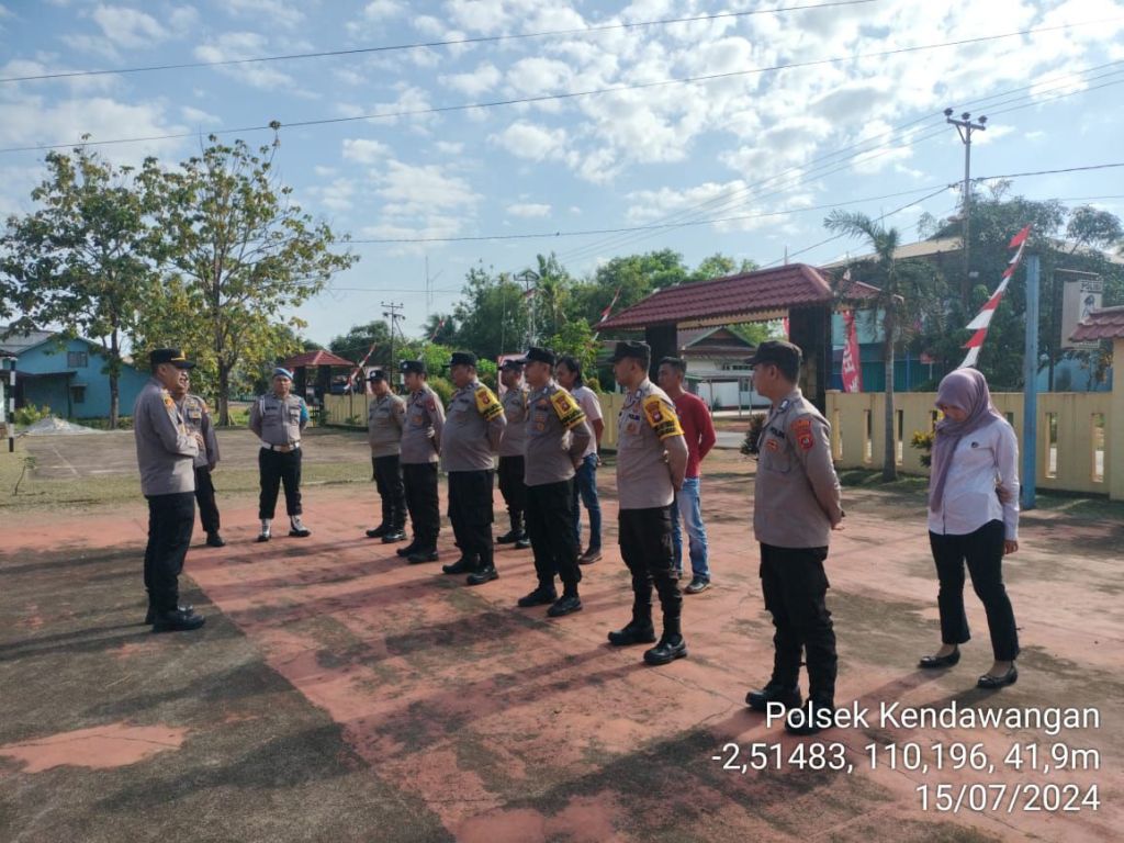 Kendawangan – Personil Polsek Kendawangan Polres Ketapang rutin melaksanakan Apel Pagi setiap hari di halaman Mako Polsek Kendawangan. Senin (15/07/2024)
