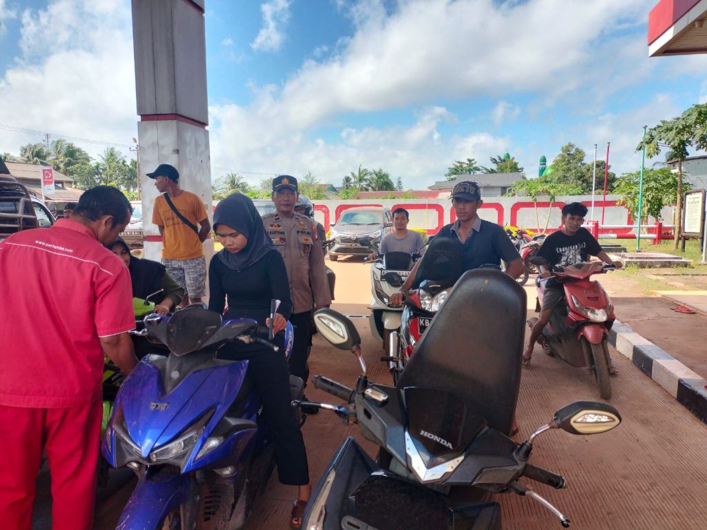 Kanit Samapta Polsek Kendawangan Ipda Slamet Santoso selain melaksanakan Patroli Kamtibmas juga melakukan pemantauan situasi Kamtibmas pada saat penyaluran BBM di SPBU Petrol Kendawangan serta mengecek stok BBM yang ada.