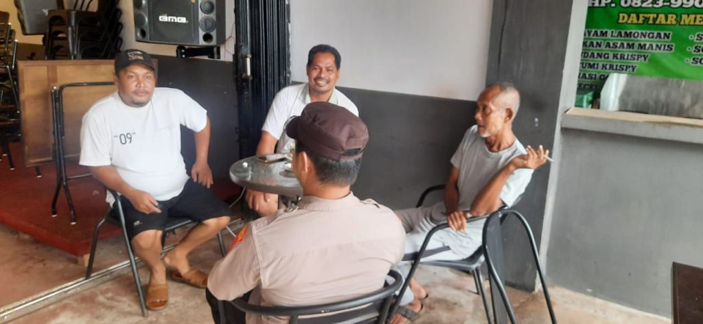 Kendawangan – Kanit Binmas Polsek Kendawangan sambang ke warga yang sedang duduk warung kopi Setara di Desa Kendawangan Kiri kec. Kendawangan. Jum’at (20/09/2024)