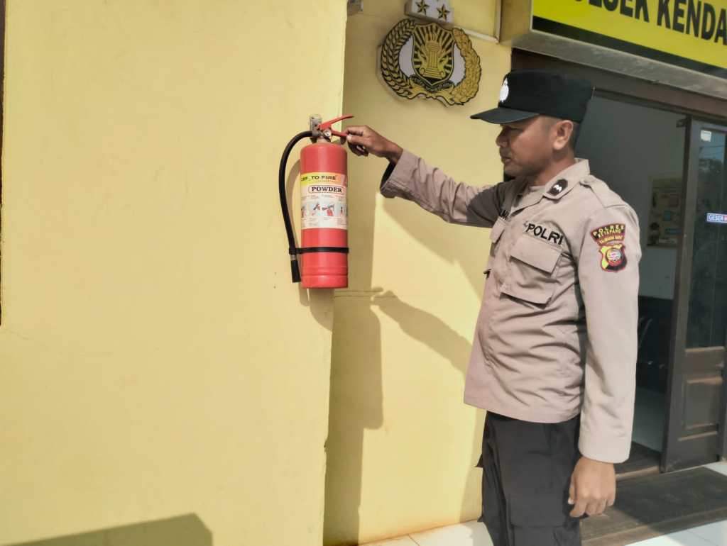“Kapolsek Kendawangan Iptu Faldo Yefri Oktavianus S.Tr.K., M.H mengatakan pengecekan Apar ( Alat Pemadam Kebakaran ) rutin dilaksanakan setiap piket, guna mengantisipasi pencegahan terjadi kebakaran di mako maupun disekitar asrama Polsek dan Apar yang berada di Mako layak pada saat ingin digunakan”.