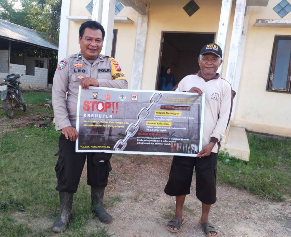 Kendawangan – Anggota Bhabinkamtibmas Polsek Kendawangan cegah kebakaran hutan dan lahan (Karhutla) melalui himbauan dan sosialisasi kepada masyarakat di Kec. Kendawangan