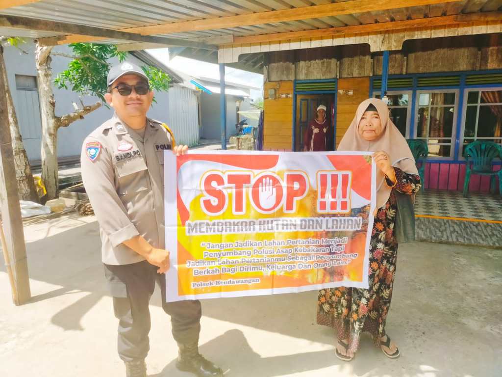Seperti halnya yang dilakukan Bhabinkamtibmas Polsek Kendawangan Briptu Sandi melaksanakan sosialisasi dan memberikan himbauan tentang bahaya yang di timbulkan akibat dari pembakaran hutan dan lahan kepada masyarakat Desa Natai Kuini Kec. Kendawangan, Kamis (14/09/2023).
