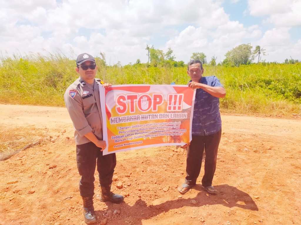 Kendawangan – Anggota Bhabinkamtibmas Polsek Kendawangan cegah kebakaran hutan dan lahan (Karhutla) melalui hinbauan dan sosialisasi kepada masyarakat di Kec. Kendawangan