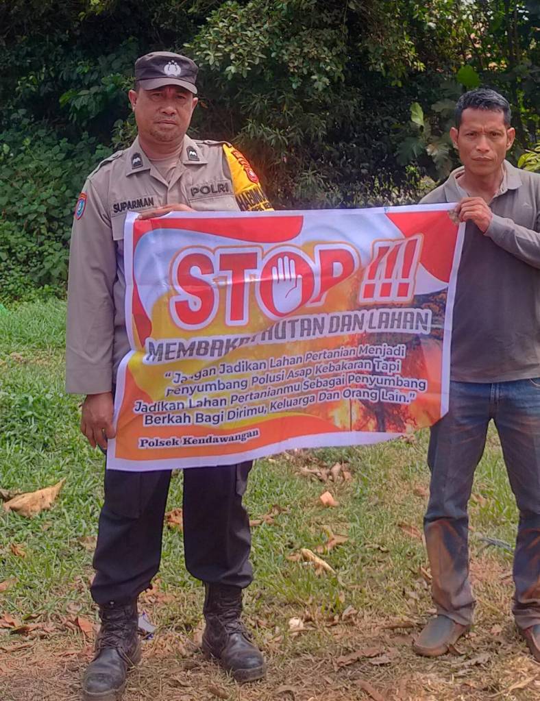 “Kami mensosialisasikan pencegahan karhutla yang berisikan larangan dan sanksi pidana bagi pelaku pembakaran hutan dan lahan kepada masyarakat agar diimplementasikan dan diketahui,” terang Kapolsek Kendawangan