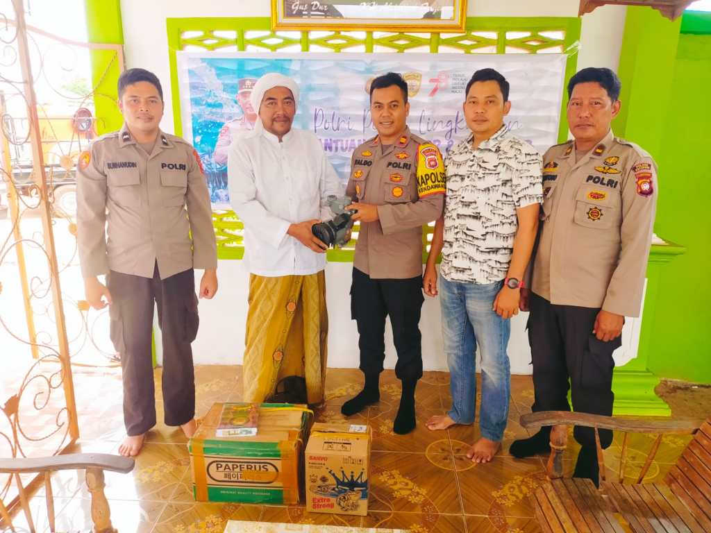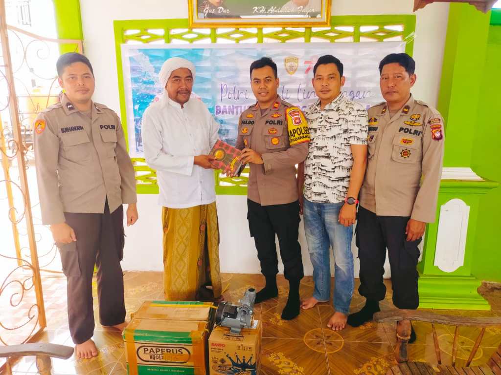 Dalam giat sambang nya tersebut Kapolsek Kendawangan menyerahkan bantuan berupa 1 (satu) buah mesin Air merk Sanyo kepada pimpinan pondok pesantren Al – Islah Kendawangan
