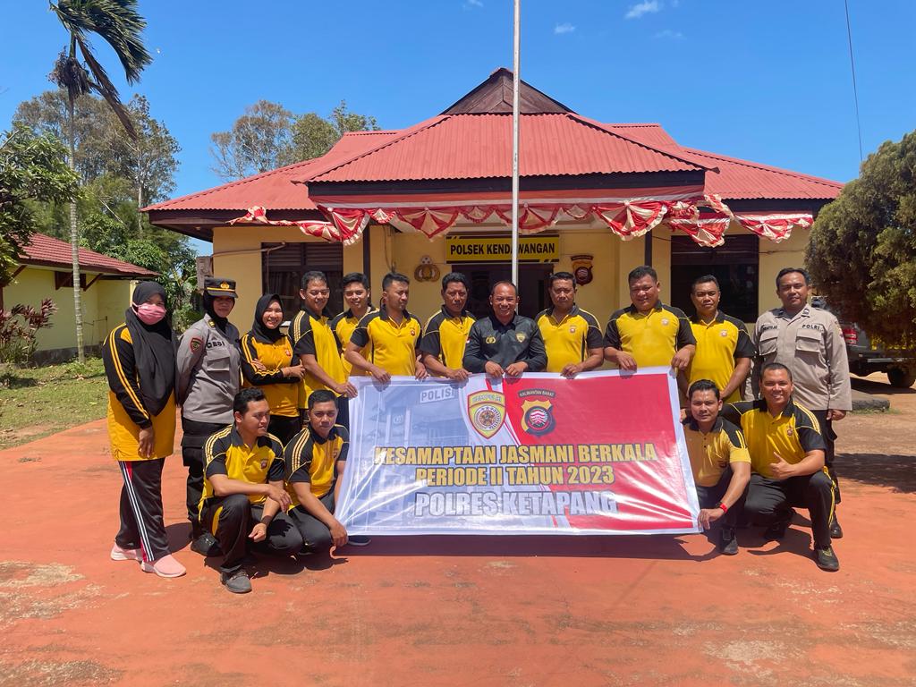 Kendawangan, Personil Polsek Kendawangan Polres Ketapang melaksanakan Kesamaptaan Jasmani Berkala Semester II T. A 2023 di Mako Polsek Kendawangan, Selasa (29/08/2023)