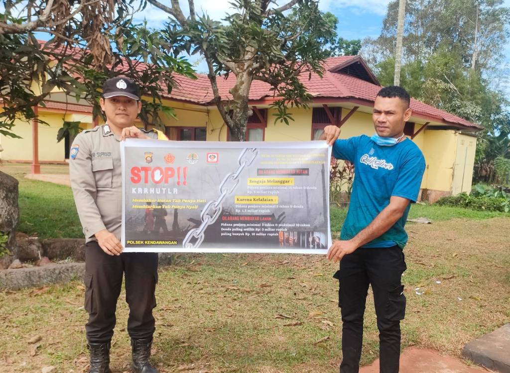 “Pada kesempatan ini Bhabinkamtibmas Polsek Kendawangan mengajak seluruh masyarakat khusus nya Desa Air Hitam Besar mari bersama sama mematuhi peraturan tentang larangan membakar hutan dan lahan”.
