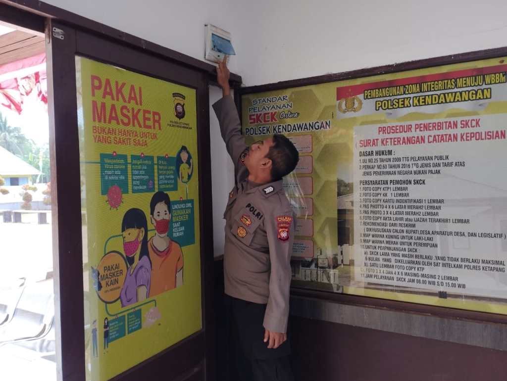 Kendawangan – Anggota Polsek Kendawangan Polres Ketapang yang melaksanakan piket jaga mako rutin melakukan pengecekan instalasi listrik yang berada di Mako Polsek Kendawangan