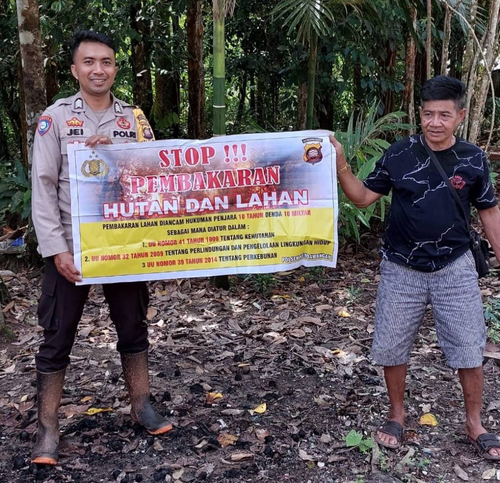 Mari bersama – sama kita cegah karhutla, agar tidak terjadi kabut asap di wilayah hukum Kecamatan Kendawangan. Tegas Kapolsek. (F)