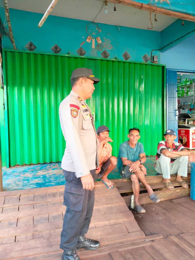 Seperti yang dilalukan oleh Kanit Samapta Polsek Kendawangan Ipda Slamet Santoso melaksanakan patroli Kamtibmas dan menyambangi warga yang sedang bersantai di depan pelabuban sekawan di Dusun Bandaran Desa Kendawangan Kiri, Sabtu (29/07/2023).