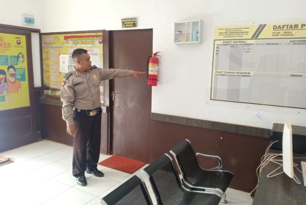 “Kapolsek Kendawangan Iptu Faldo Yefri Oktavianus S.Tr.K., M.H mengatakan pengecekan Apar ( Alat Pemadam Kebakaran ) rutin dilaksanakan setiap piket, guna mengantisipasi pencegahan terjadi kebakaran di mako maupun disekitar asrama Polsek dan Apar yang berada di Mako layak pada saat ingin digunakan”.