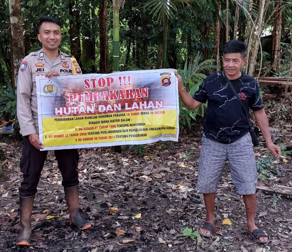 Kendawangan – Bhabinkamtibmas Polsek Kendawangan Polres Ketapang setiap hari melaksanakan sosialisasi / himbauan pencegahan Karhutla kepada masyarakat di Desa binaannya, Minggu (23/07/2023).