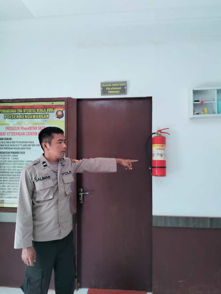 “Kapolsek Kendawangan Iptu Faldo Yefri Oktavianus S.Tr.K., M.H mengatakan pengecekan Apar ( Alat Pemadam Kebakaran ) rutin dilaksanakan setiap piket, guna mengantisipasi pencegahan terjadi kebakaran di mako maupun disekitar asrama Polsek dan Apar yang berada di Mako layak pada saat ingin digunakan”.