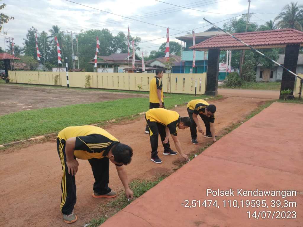 Kendawangan, Anggota Polsek Kendawangan yang melaksanakan piket jaga mako setiap hari rutin melaksanakan pengecekan Apar ( Alat Pemadam Kebakaran ) yang berada di mako Polsek Kendawangan