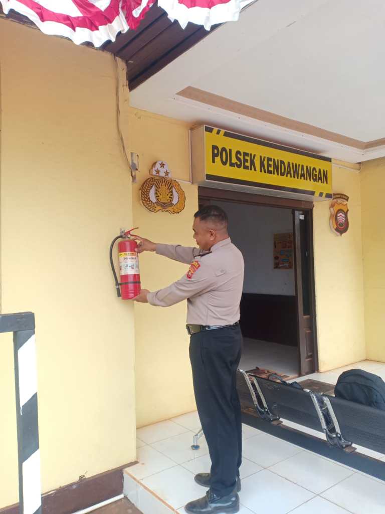 “Kapolsek Kendawangan Iptu Faldo Yefri Oktavianus S.Tr.K., M.H mengatakan pengecekan Apar ( Alat Pemadam Kebakaran ) rutin dilaksanakan setiap piket, guna mengantisipasi pencegahan terjadi kebakaran di mako maupun disekitar asrama Polsek dan Apar yang berada di Mako layak pada saat ingin digunakan”.