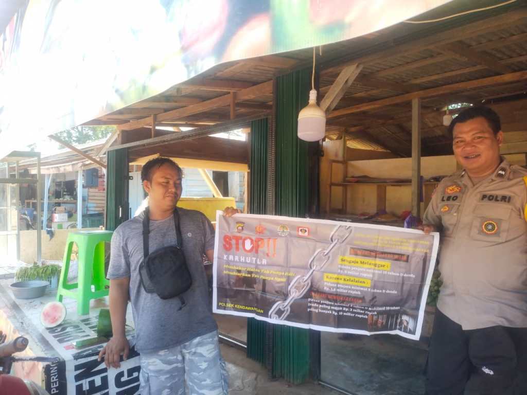 “Kanit Binmas Polsek Kendawangan Bripka Heri Yandi melakukan upaya dalam bentuk preentif, dengan memberikan sosialisasi kepada masyarakat Kecamatan Kendawangan. Kegiatan tersebut disambut dengan baik oleh para warga dan mempersilahkan petugas untuk menyampaikan sosialisasi tentang penanggulangan Karhutla”