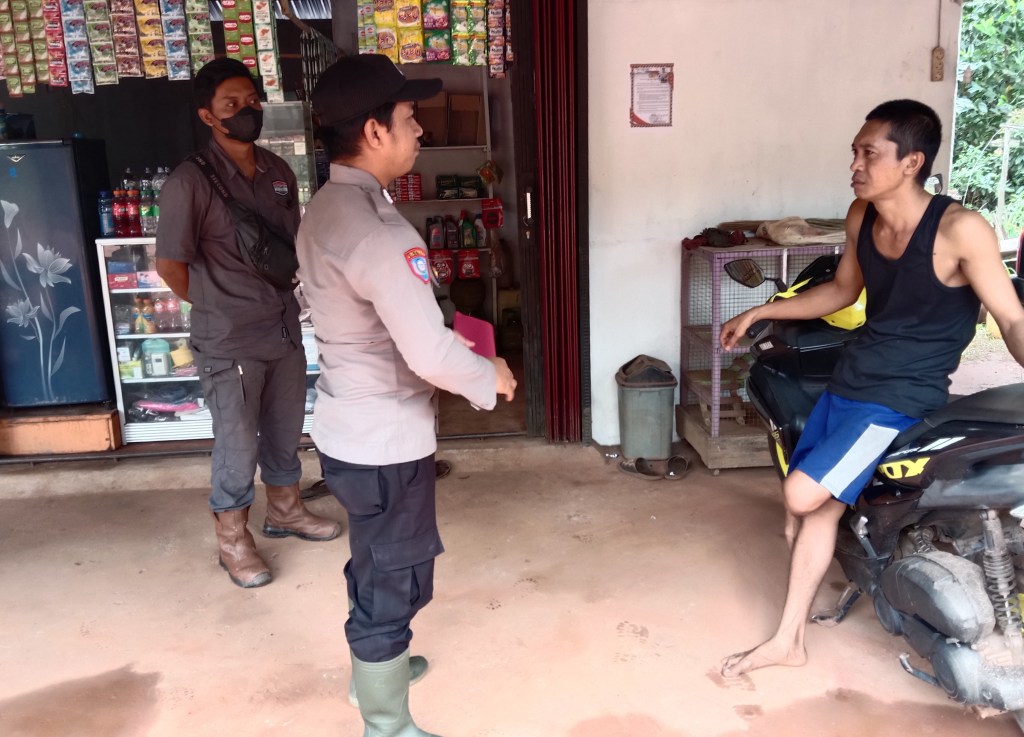 Kendawangan, Kanit Binmas Polsek Kendawangan Bripka Heri Yandi melaksanakan kegiatan sambang dan patroli kepada warga masyarakat serta menyampaikan sosialisasi maklumat Kapolda Kalbar tentang sanksi dan Larangan Tentang Karhutla di Dusun Batu Begendang Desa Mekar Utama Kec. Kendawangan, Sabtu (08/07/2023).