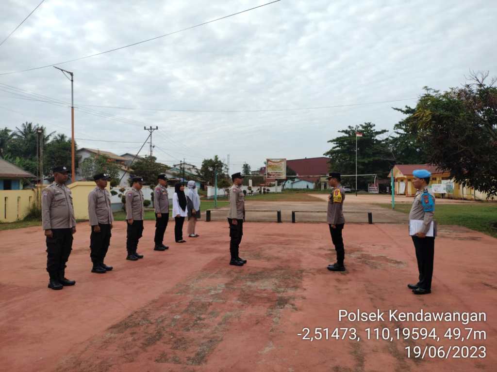 Kendawangan – Personil Polsek Kendawangan Polres Ketapang melaksanakan Apel Pagi setiap hari di halaman Mako Polsek Kendawangan. Senin (19/06/2023)
