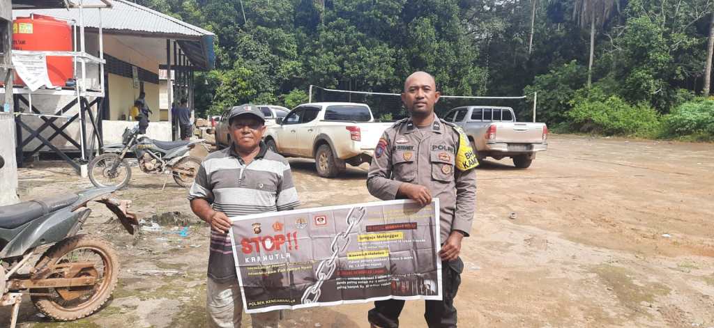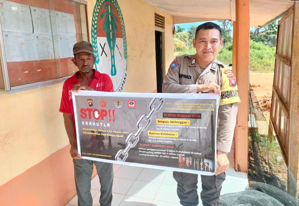Kendawangan, Bhabinkamtibmas Polsek Kendawangan Polres Ketapang melaksanakan setiap hari aktif melakukan Sosialisasi Karhutla kepada masyarakat. Kamis (15/06/2023)
