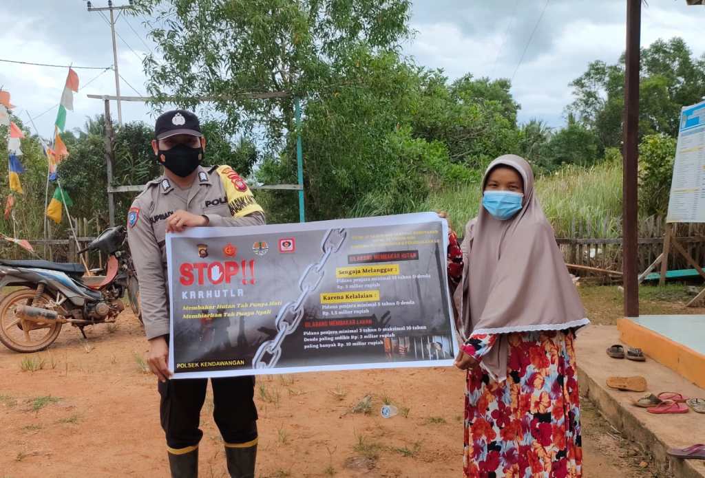 Pada kesempatan ini Bhabinkamtibmas Polsek Kendawangan mengajak seluruh masyarakat mari bersama sama mematuhi peraturan tentang larangan membakar hutan dan lahan.