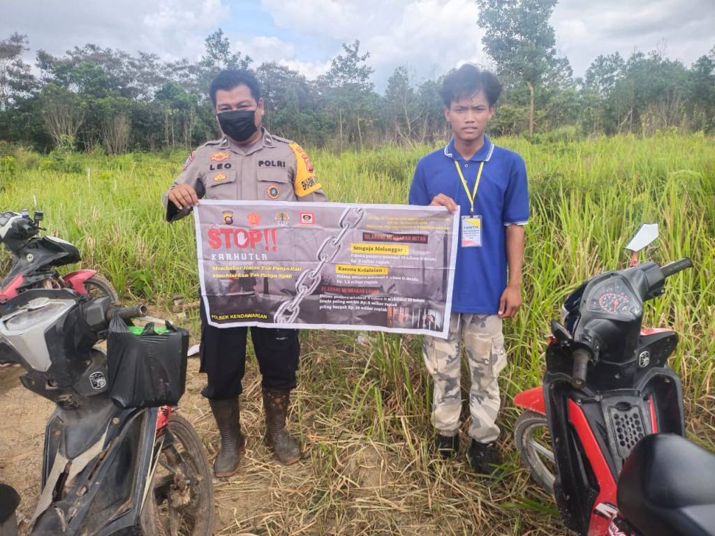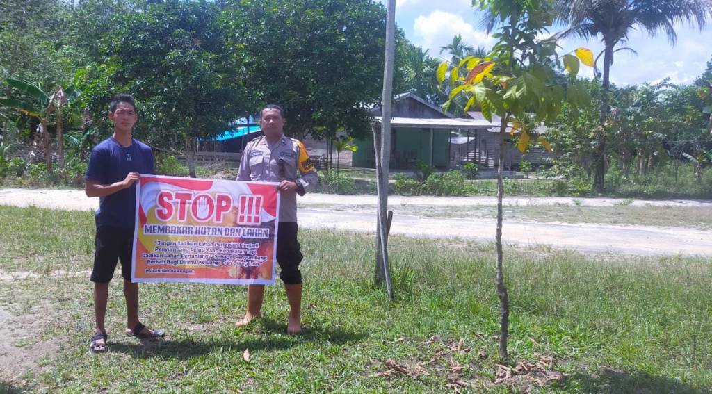 Kendawangan – Bhabinkamtibmas Polsek Kendawangan gencar mencegah Kebakaran Hutan dan Lahan di wilayah hukum Polsek Kendawangan