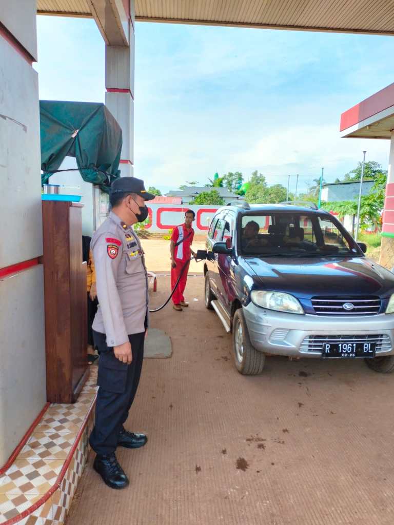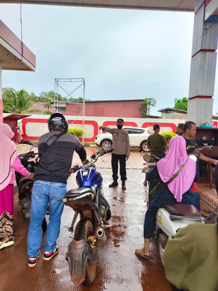 Kanit Samapta memberikan himbauan Kamtibmas kepada masyarakat yang sedang melakukan antrian di SPBU Petrol Kendawangan agar bersikap tertib saat mengantri di areal SPBU.