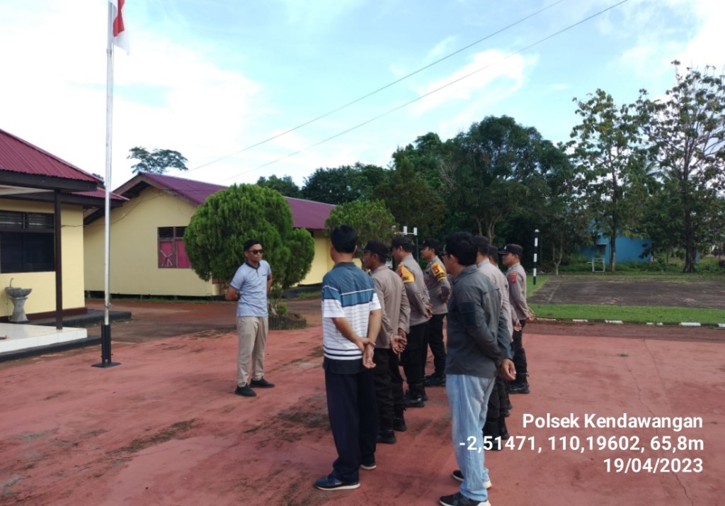 Giat Apel Gelar Pasukan dalam rangka pengamanan malam takbiran menyambut Hari Raya Idul Fitri 1444 H dilakukan dihalaman Mako Polsek Kendawangan, Jum’at (21/04/2023)