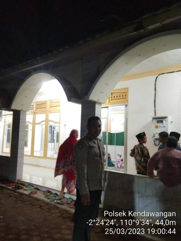 Kendawangan, Personil Polsek Kendawangan melaksanakan pengamanan ibadah Sholat Tarawih di Mesjid yang ada di Kecamatan Kendawangan