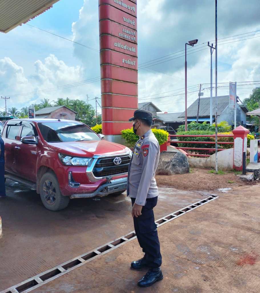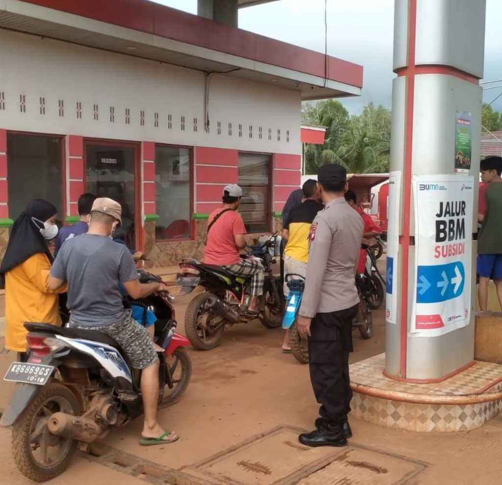 Kanit Samapta memberikan himbauan Kamtibmas kepada masyarakat yang sedang melakukan pengisian di SPBU Petrol Kendawangan agar bersikap tertib saat mengantri di areal SPBU.