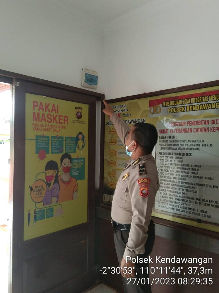 Polsek Kendawangan – Sebagai salah satu bentuk tugas tanggung jawab serta menindak lanjuti petunjuk dan arahan Pimpinan, Ka SPKT Polsek Kendawangan melaksanakan kontrol / pengecekan terhadap situasi dan kondisi para Tahanan yang ditahan di dalam Ruang Tahanan Polsek Kendawangan, Sabtu (28/01/2023).