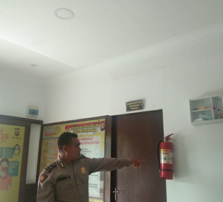 Kendawangan, Anggota Polsek Kendawangan yang melaksanakan piket jaga mako rutin melaksanakan pengecekan Apar ( Alat Pemadam Kebakaran ) yang berada di mako Polsek Kendawangan