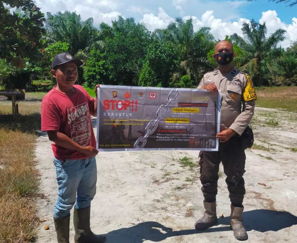 Pada kesempatan ini Bhabinkamtibmas Polsek Kendawangan Aipda Eko Rusbandi mengajak seluruh masyarakat mari bersama sama mematuhi peraturan tentang larangan membakar hutan dan lahan.