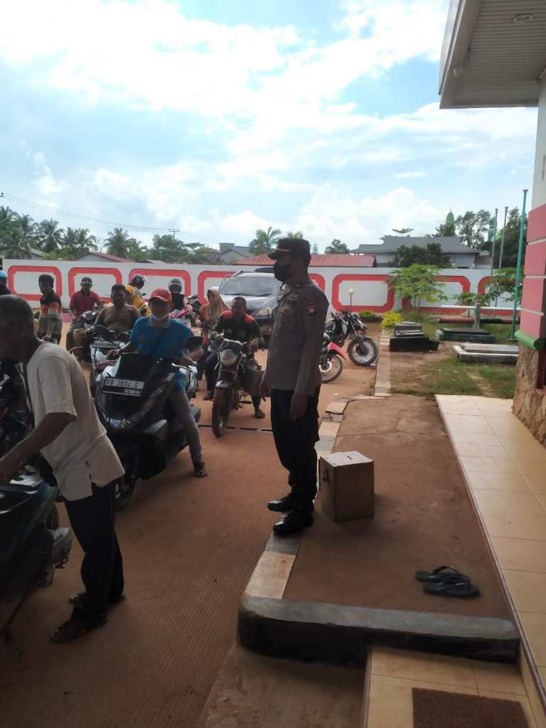 Kanit Samapta memberikan himbauan Kamtibmas kepada masyarakat yang sedang melakukan pengisian di SPBU Petrol Kendawangan agar bersikap tertib saat mengantri di areal SPBU.