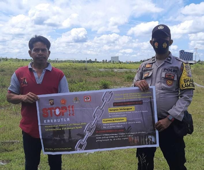Pada kesempatan ini Bhabinkamtibmas Polsek Kendawangan Aipda Eko Rusbandi mengajak seluruh masyarakat mari bersama sama mematuhi peraturan tentang larangan membakar hutan dan lahan.