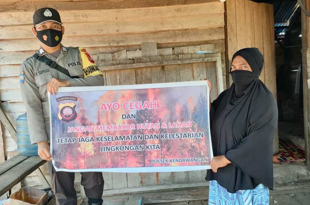 Pada kesempatan ini Bhabinkamtibmas Polsek Kendawangan Bripka Deni Supriadi mengajak seluruh masyarakat mari bersama sama mematuhi peraturan tentang larangan membakar hutan dan lahan.