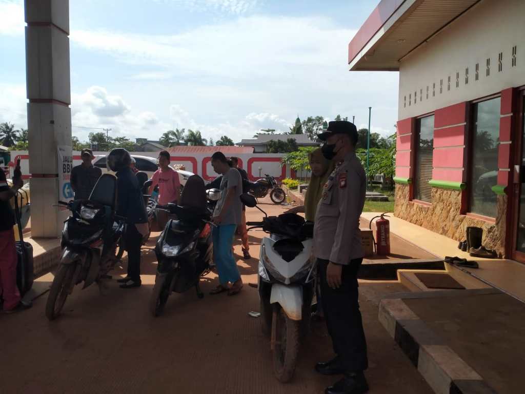 Kanit Samapta memberikan himbauan Kamtibmas kepada karyawan SPBU agar tetap melaksanakan koordinasi dengan pihak Kepolisian mengenai situasi kamtibmas serta kepada masyarakat yang mengisi BBM bersikap tertib saat mengantri di areal SPBU.