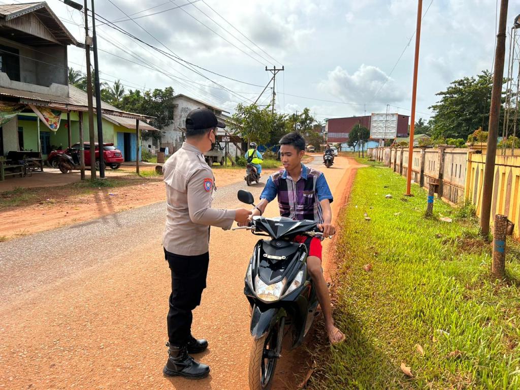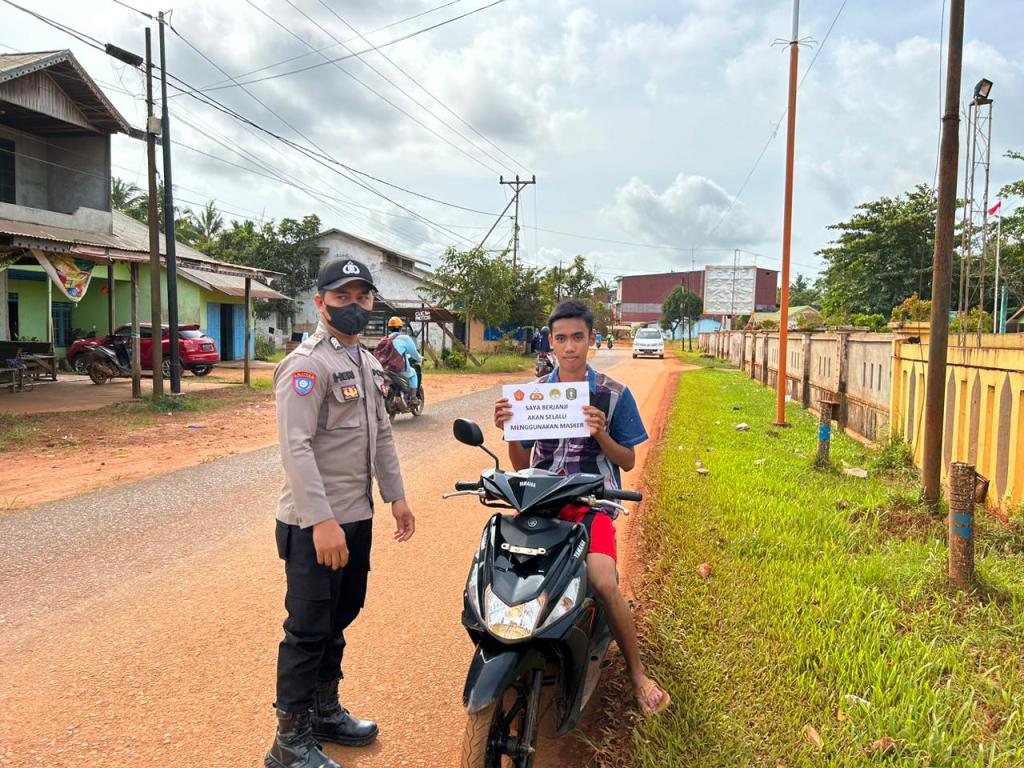 Kendawangan, Kanit Binmas Polsek Kendawangan melakukan kegiatan himbauan / sosialisasi penggunaan masker di depan Mako Polsek Kendawangan Dusun Batu Begendang Desa Mekar Utama Kec. Kendawangan, Jum’at (06/01/2023)