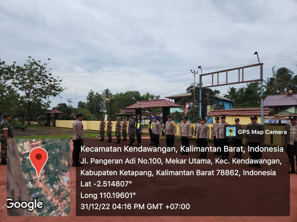 Kendawangan, Dalam mempersiapkan pengamanan pergantian malam Tahun Baru, Polsek Kendawangan bersama Forkopincam Kendawangan, Anggota Airud Marnit Kendawangan, Anggota Koramil Kendawangan dan Babin Potmar AL Kendawangan melaksanakan apel di halaman Polsek Kendawangan, Sabtu (31/12/2022)