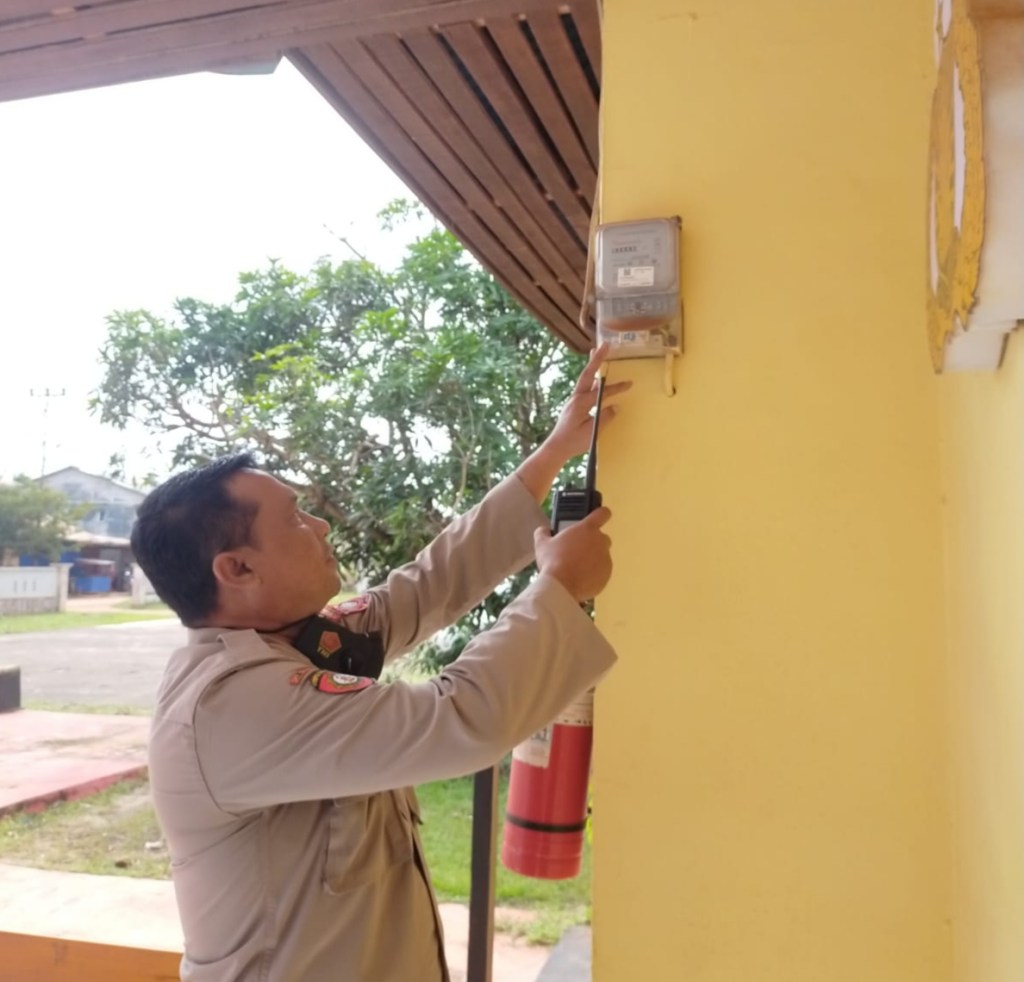 Pengecekan arus listrik dilakukan untuk memastikan instalasi listrik yang ada di Mako Polsek Kendawangan dalam keadaan aman, dan mencegah konsleting listrik yang bisa menyebabkan kebakaran