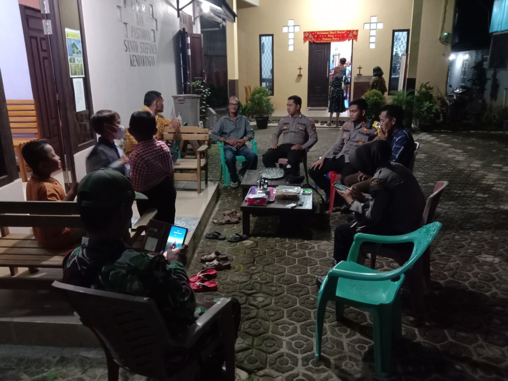Kendawangan, Anggota Polsek Kendawangan melakukan kegiatan himbauan / sosialisasi penggunaan masker di depan Mako Polsek Kendawanga Dusun Batu Begendang Desa Mekar Utama Kec. Kendawangan, Minggu ( 25/12/2022 )