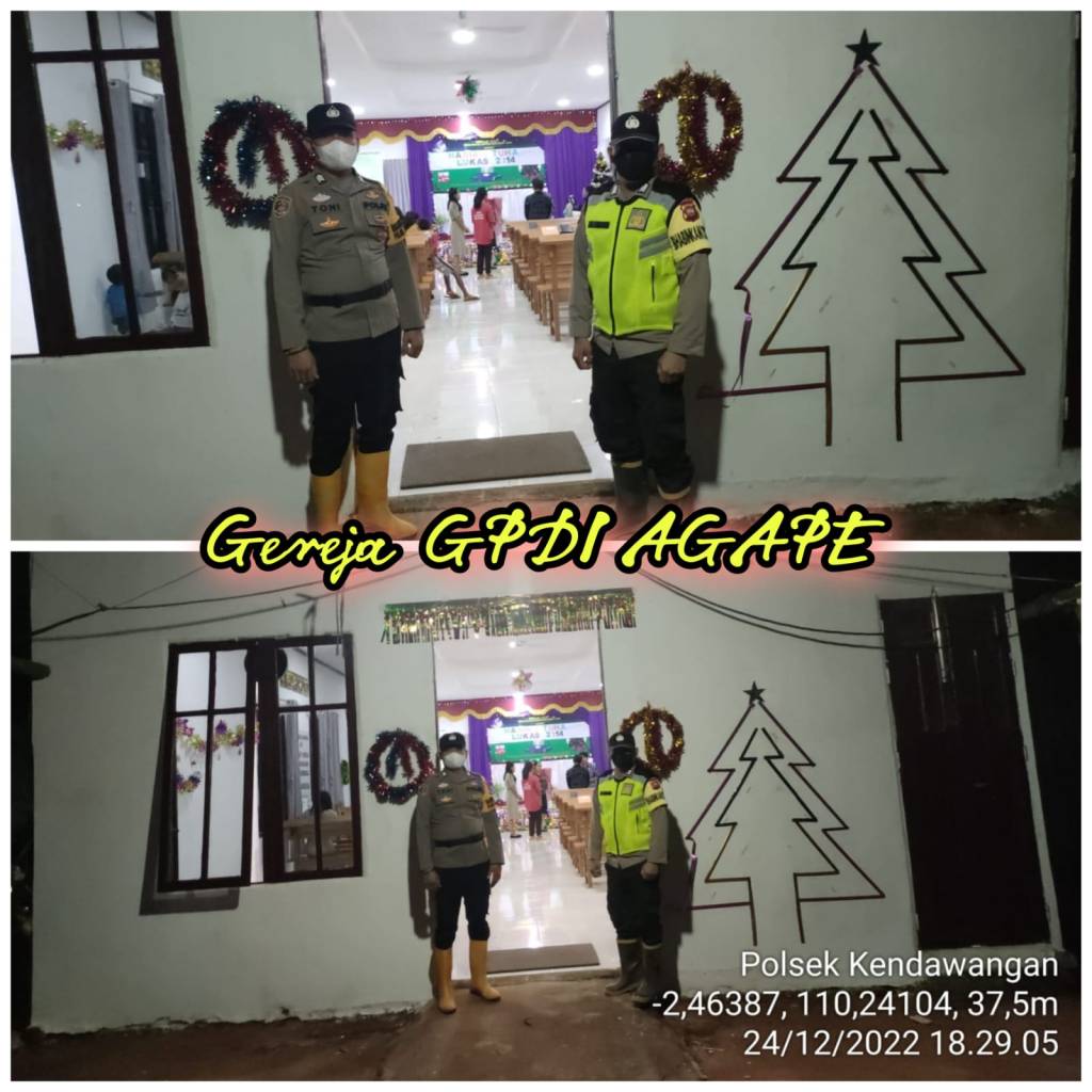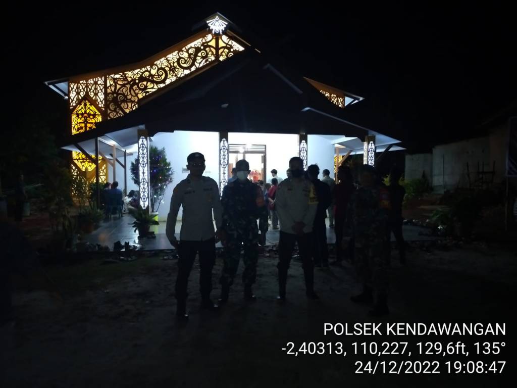 Kendawangan, Personil Polsek Kendawangan melaksanakan Pengamanan Perayaan Ibadah Natal di Gereja GMII Agape di Dusun Bangun Sari Desa Banjar Sari Kec. Kendawangan, (24/12/2022)