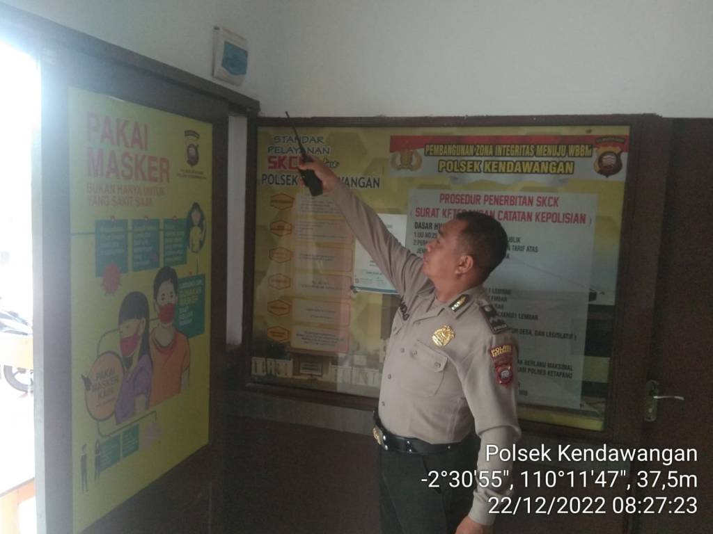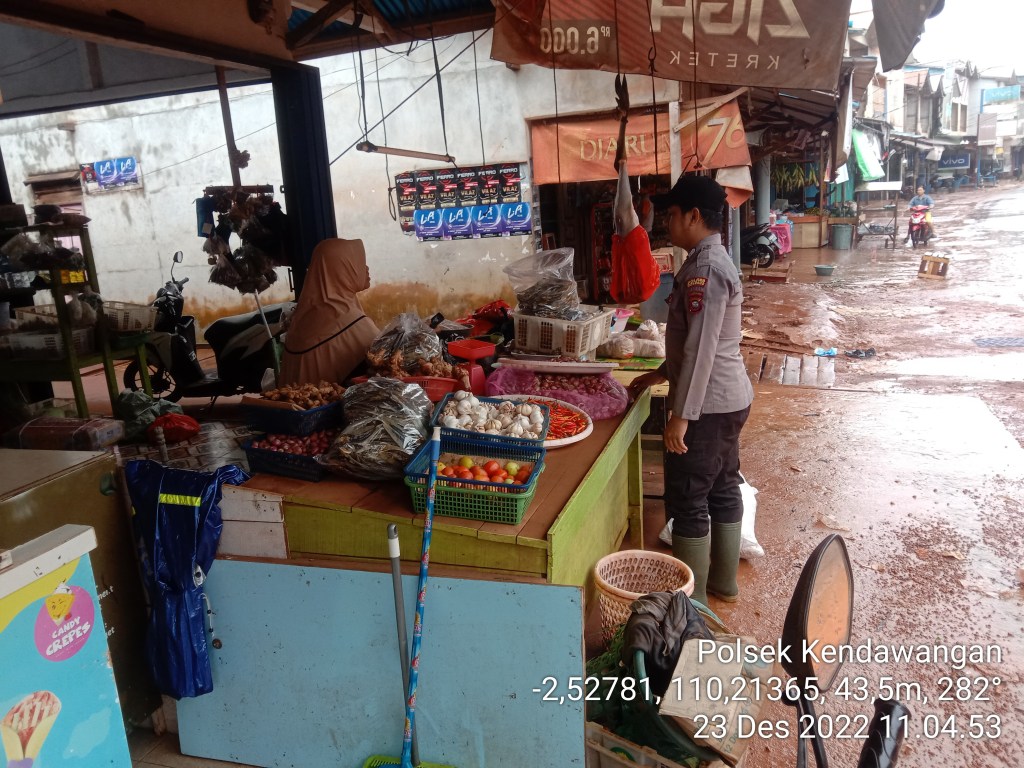 Kendawangan, Kanit Binmas Polsek Kendawangan melaksanakan patroli di seputaran Pasar Kendawangan di Dusun Bandaran Desa Kendawangan Kiri Kec. Kendawangan, Jum’at (23/12/2022)
