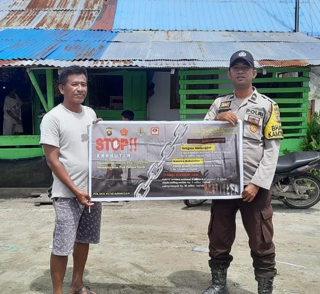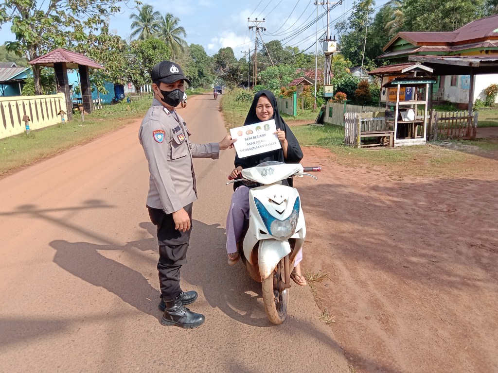 Kendawangan – Demi mencegah penyebaran Virus Covid 19 di Kec. Kendawangan, Anggota Polsek Kendawangan melakukan Operasi Yustisi sosialisasi / himbauan penerapan Protokol kesehatan seperti penggunaan Masker kepada masyarakat yg melaksanakan kegiatan di luar rumah