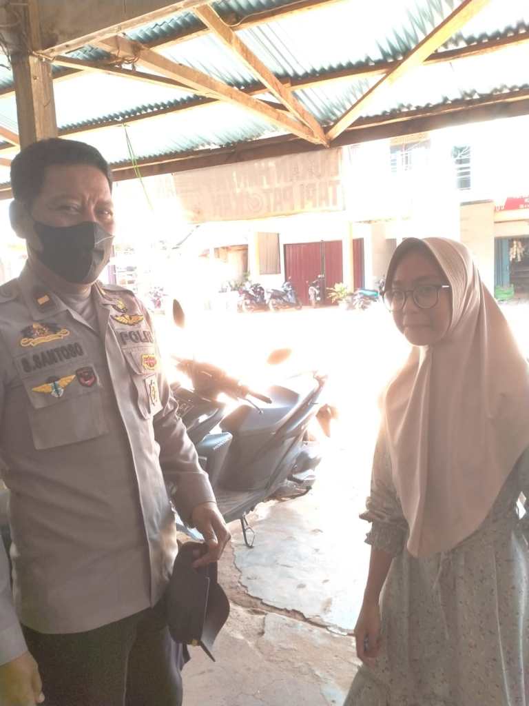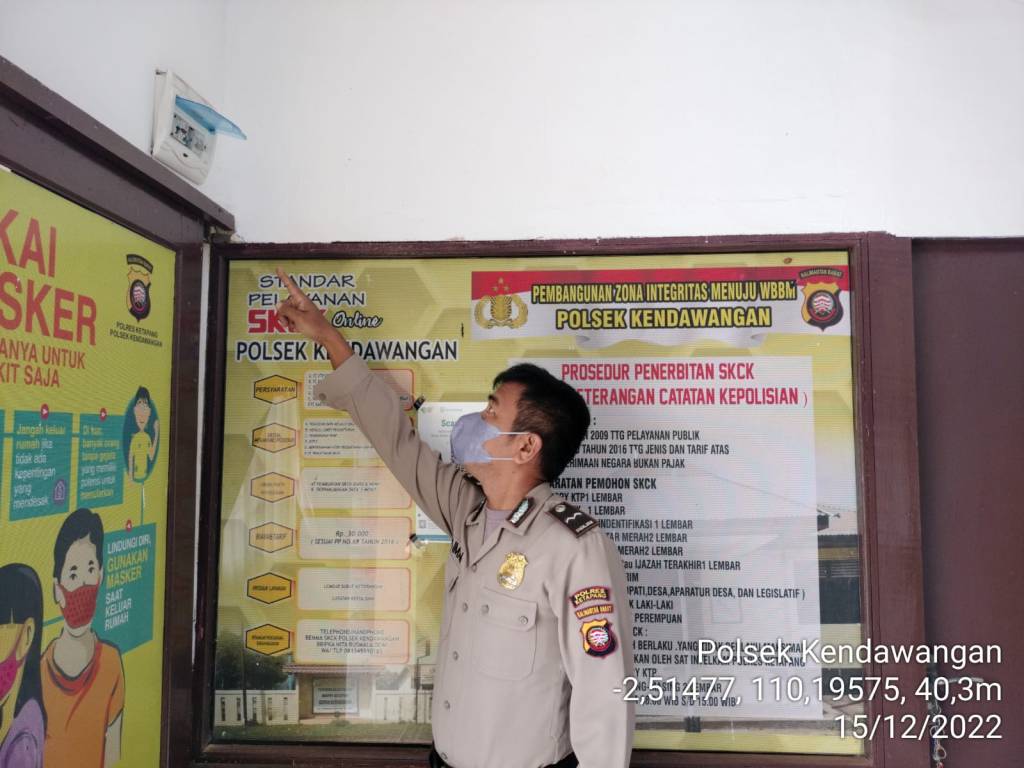 Kanit Samapta Polsek Kendawangan Ipda Slamet Santoso melaksanakan kegiatan Patroli dialogis menyambangi masyarakat yang sedang berada di pasar Desa Kendawangan Kiri Kec. Kendawangan, Kamis (15/12/2022).