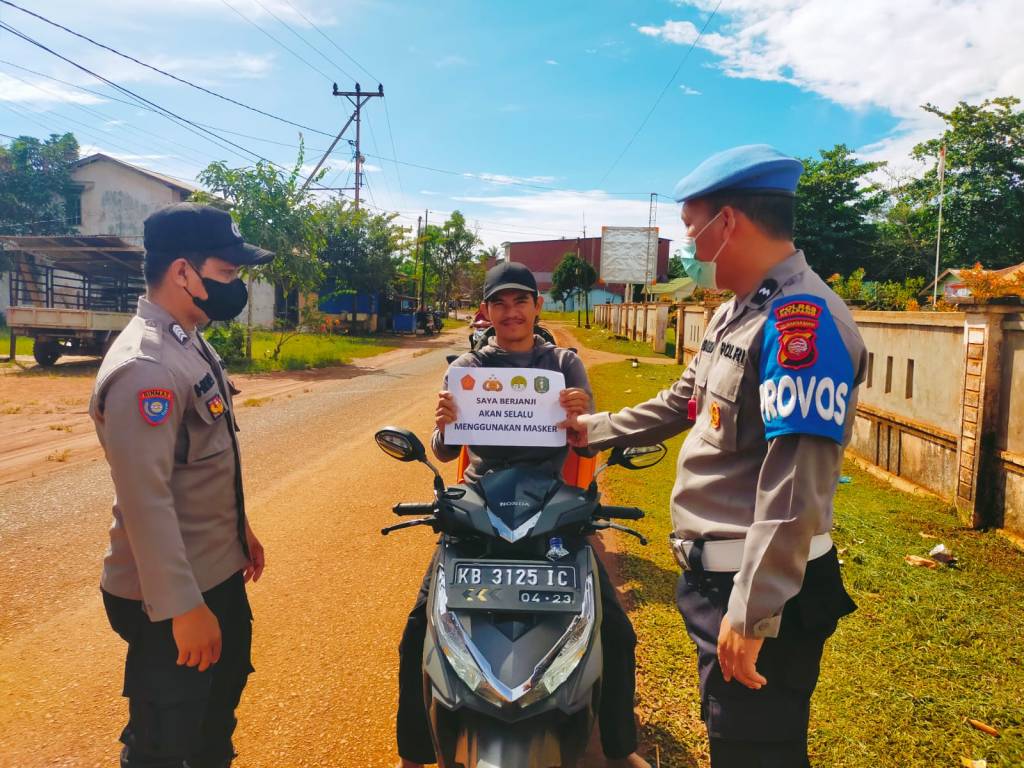 Kendawangan, Personil Polsek Kendawangan setiap hari melaksanakan giat Sosialisasi / himbauan kepada masyarakat untuk mematuhi Prokes seperti penggunaan masker pada saat melakukan kegiatan di luar rumah