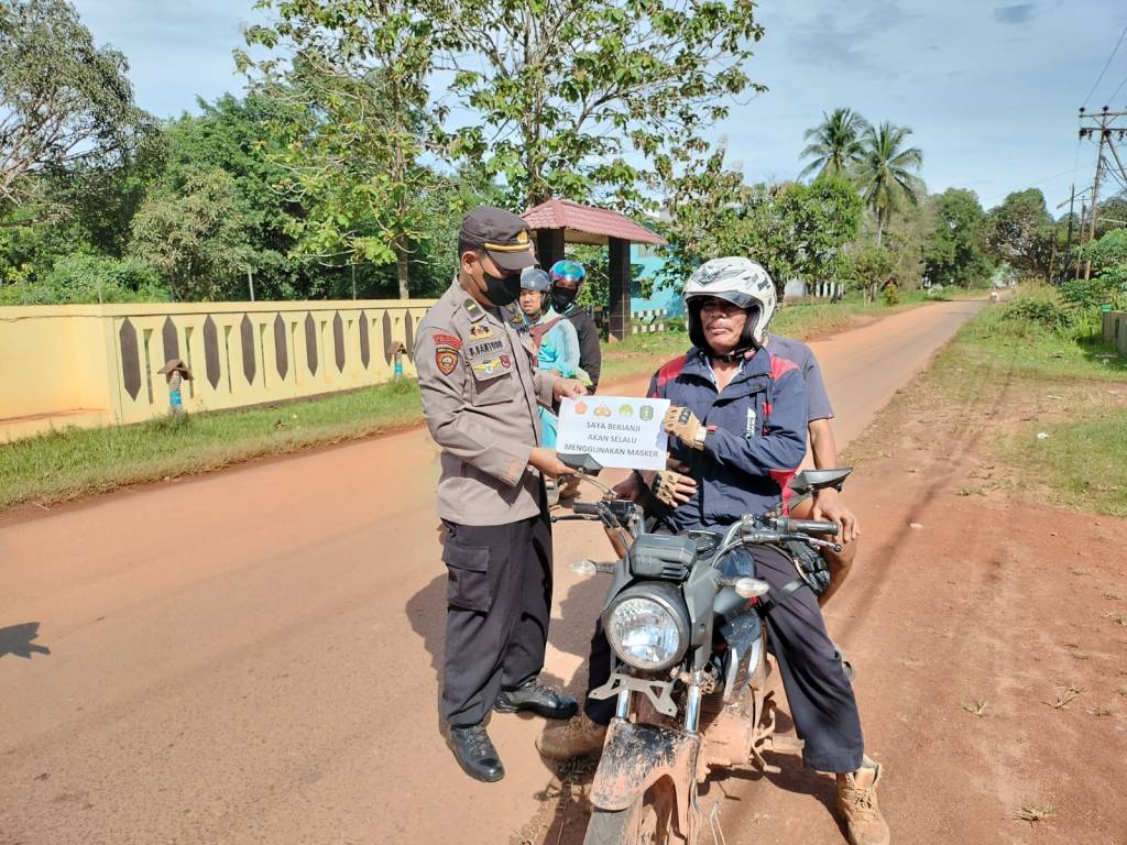 Giat Sosialisasi penggunaan masker di lakukan di depan Mako Polsek Kendawangan di Jl. Pangeran Cakra Desa Mekar Utama, Sabtu (10/12/2022)