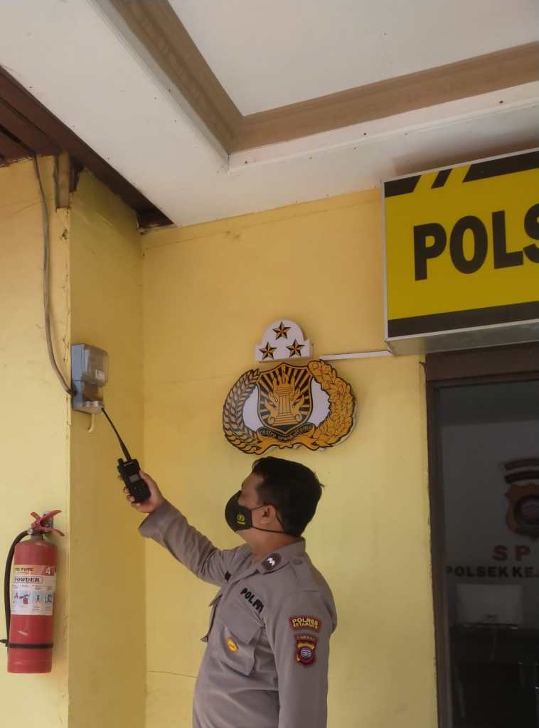 Kendawangan – Anggota Polsek Kendawangan Polres Ketapang yang melaksanakan piket jaga mako rutin melakukan pengecekan arus listrik yang berada di Mako Polsek Kendawangan