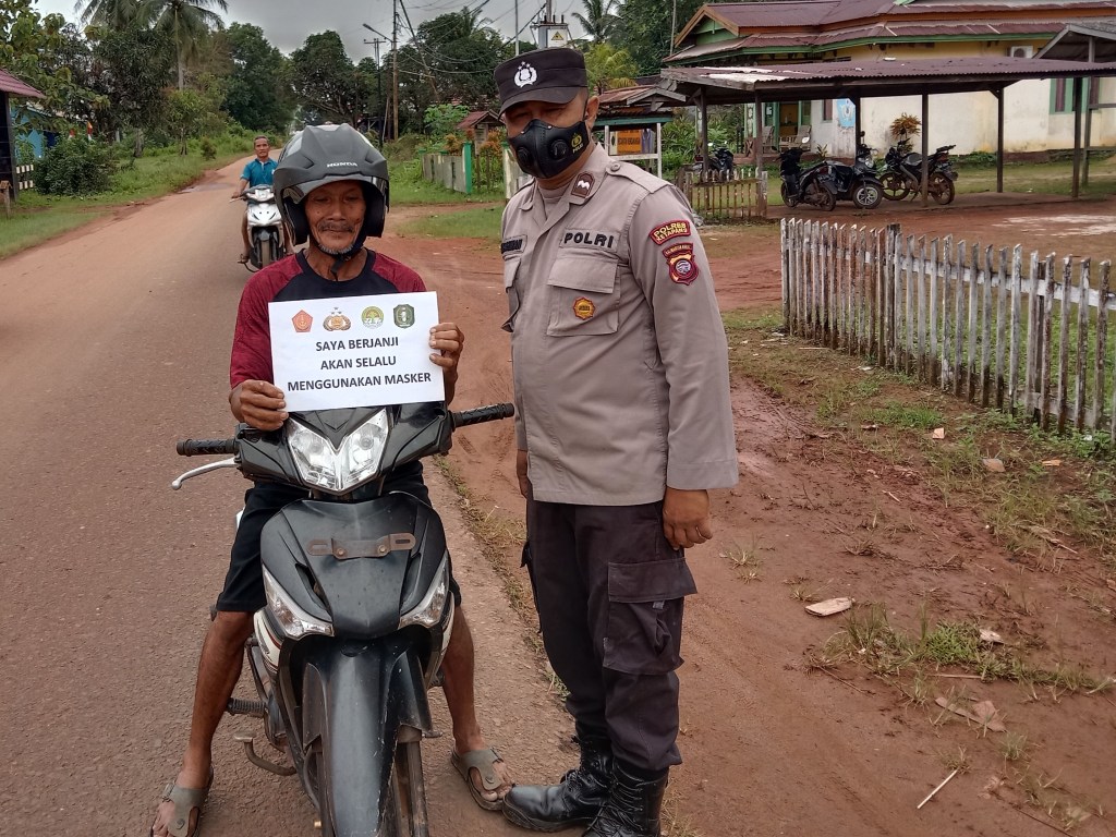 Sosialisasi penggunaan masker dilakukan selain memutus rantai penyebaran Virus Covid 19, juga untuk menjaga kesehatan bagi masyarakat khususnya di Kec. Kendawangan